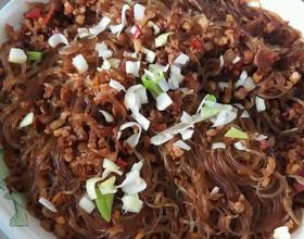 热锅入油,油温上来后,将花椒入锅,炒出香味,倒入葱、蒜末煸炒一会,再将肉末入锅翻炒片刻,待肉末半熟时,倒入适量豆瓣酱,炒出红油