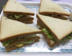 1.切片面包第一层加草莓酱,鸡蛋,香肠,黄瓜条
