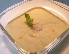 放入蒸架、再放入拌好的鸡蛋盖上锅盖大火蒸四分钟、放入剩余的小半个海鲜球装饰。继续盖上盖子蒸三四分钟后熄火