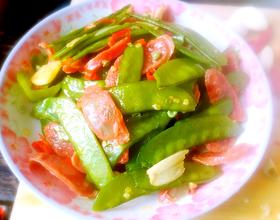 1、荷兰豆要新鲜一点.2、香肠微甜口味的更好吃哦.3、荷兰豆氽烫时加入一勺盐能使荷兰豆更入味,保持鲜美4、电饭煲功力太小,所以不可以操之过急,按部就班等美味出锅吧,用菜锅的步骤也是一样的啦,味道会更好哦。