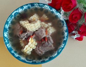- 5. 炒锅倒入凉水,并放入姜片,葱段,八角,枸杞,开大火烧开。