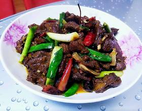 热锅油七层热时,将肉,干红椒,同时加入爆炒,加入料酒 。