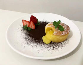 - 11. 烤好后等冷却脱模装饰即可,如果不容易脱模就用刀子沿着烤碗边沿划一圈然后轻轻摇晃.
