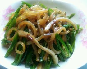 再放入调料:盐、葱段、味精翻炒片刻起锅。