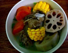 莲藕玉米龙骨汤的做法