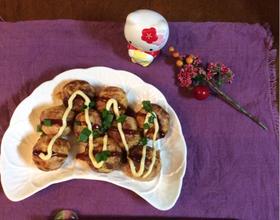 放进香肠(章鱼)芝士然后再浇一勺调好的粉,用筷子来回转不让它焦。