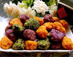 把糊糊用手挤成丸子大小的个,下锅炸至微微变色即可。(中小火)