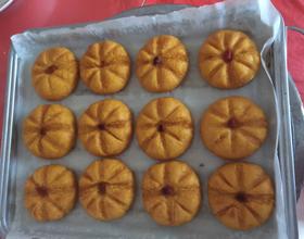 把准备好的食材一起揉成面团,用牙签压成米字,中间放一个枸杞装饰