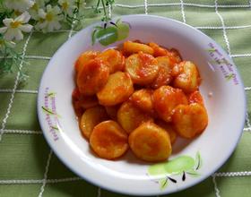 锅中倒入适量的油,放入西红柿翻炒均匀,在放入番茄酱,盐,少量的水炒匀