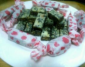 把黄油化开后一定要用小火,把奶粉放入棉花糖里翻拌的时候要快,还要离开锅底中间,不然温度高会把棉花糖煎糊,放入黑芝麻瓜子也要快速翻拌。