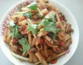 翻炒几次,加入葱段,既可出锅。