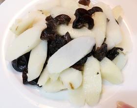 倒入云耳一起快炒、入少量鸡粉、盐调味后起锅