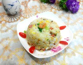 - 5. 再下米饭,(关小火把米饭先搞散)转大火炒均匀