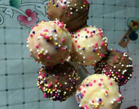 融化巧克力,按自己喜好裹上巧克力,撒上糖珠。
