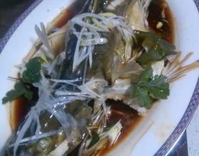 蒸七分钟后拿出盘子逼出腥水,再在鱼身淋上蒸鱼豉油再蒸十分钟。取出后铺上葱丝淋上烫油即可!