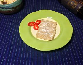从冰箱取出猪皮,第一遍大概清理一下肥肉。