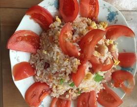 另一个西红柿切片,把炒好的米饭放进盘子中就好啦
