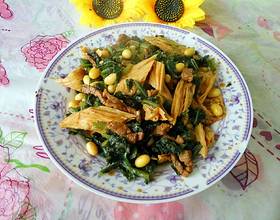 一次到入雪里蕻,黄豆和腐竹煸炒匀