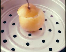挖出来的洞记得切成块状。添在梨里。加糖。