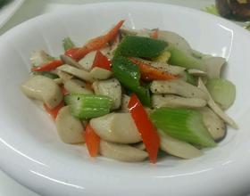 杏鲍菇开水已经滚开水焯过,不需要炒的太烂了 影响口感,还有焯过水的杏鲍菇一定要沥干水分,这样炒出来的杏鲍菇色泽才会亮丽,不那么黑溜溜的!