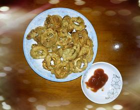 把鱿鱼圈放里面炸到两面金黄就可以啦