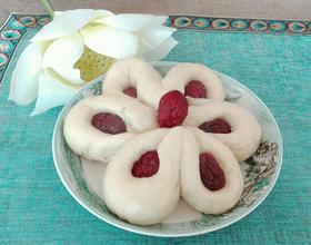 15分钟后,枣花大馒头便出炉了,中间再加上一颗红枣~