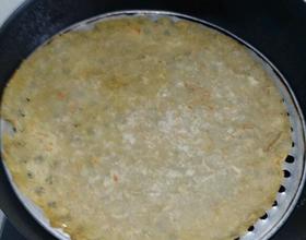 锅里放少许油,舀一勺倒入平底锅。