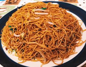 面煮好后,过冷水沥干( 沥干约等15-30分钟,这样面比较干炒出来比较有弹性)