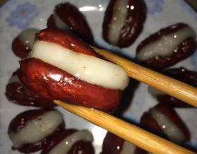 然后把糯米粉揉成小条包在红枣里面 放锅里蒸15分钟就可以了
