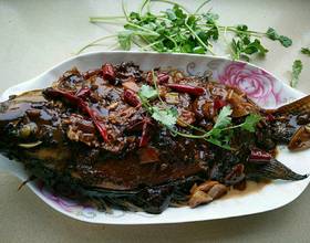 热锅热油,这样鱼皮不容易破!把鱼两面煎好后,盛出!锅内放入白糖,醋,料酒,干辣椒,葱,酱油等加入开水!放入煎好的雨,水没过鱼多一点才好!俗话说千炖豆腐万炖鱼!炖的时间越久越好吃!
