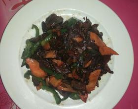 再放胡萝卜,辣椒,花椒,盐,炒一会再放,耗油,味极鲜。