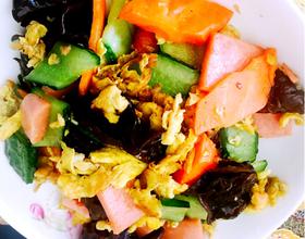 五彩斑斓~火腿黄瓜炒木耳的做法
