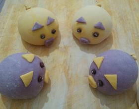 - 6. 紫薯面切成三角形做耳朵,长圆形做鼻子