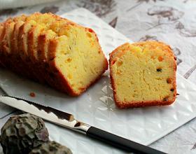 - 7. 装饰:百香果汁中加入糖粉,混合后,一滴滴加入水,至需要的浓稠状。将柠檬糖霜趁热涂在蛋糕表面。冷却后切片,密封冷藏。回油2天的磅蛋糕口感更佳。