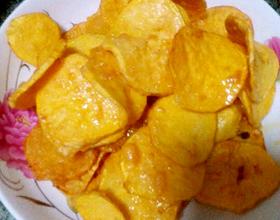 锅子多放些油,油热后,一次片片放入地瓜片,小火炸金黄