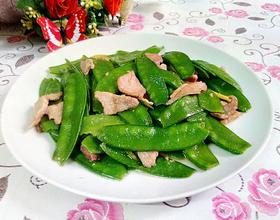 锅放清水烧开、滴几滴油(保持荷兰豆绿油)、放荷兰豆飞水