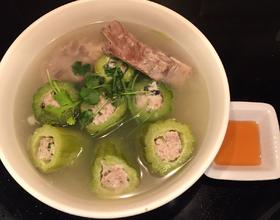 把让好的凉瓜改进汤里煮至苦瓜软就好了。放少许鸡精同三汤匙鱼露调味收火。
