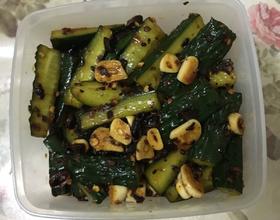 调好辣椒油和蒜与黄瓜条拌5-10钟就可以用了