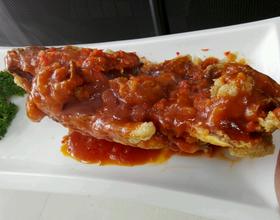 锅内注入油,烧热后放入葱、姜、蒜,炸出香味后倒入兑好的芡汁,用旺火炒制,鼓起泡时再用炸鱼的沸油冲入汁内。加以略炒迅速浇到鱼身上即成。 - 5. 就这样完成了一道菜
