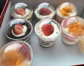 最后剩余一个芒果切丁堆在上面即可。(图片是我之前做的木糠杯和慕斯杯(最右边))