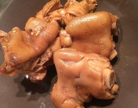 本人用的高压锅所以时间比较短 如果用电饭锅或者铁锅 可以随时用筷子戳猪蹄 来选择自己喜欢吃的软硬口感 来调整火力大小 起锅时如果味道不够再适量放入盐调味 因为事先加了老抽生抽 ~锅里不局限放什么 喜欢什么都可以加进去 味道都会沾满卤香 ~汤汁多的还能煮上一碗卤味面 ~就这样啦~