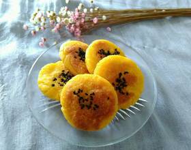 最后在南瓜饼上撒点黑芝麻(既好看还能增加香味)