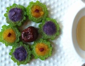 紫薯和南瓜蒸熟搅碎成泥状