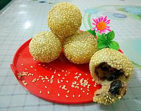 - 8. 封口搓圆,放芝麻里滚一滚,用手稍压一下芝麻,防止脱落
