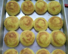 将打好的餐包酱料,用裱花袋挤在发酵好的小面包表皮,就可以放进烤炉烘培了。