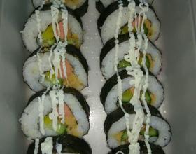 切寿司时,要尽量让刀提前泡泡水,切好,装盒!