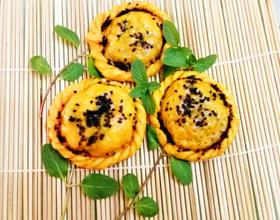 在包好的饺子中间撒上黑芝麻,放在水开的蒸锅上盖上锅盖蒸10分钟左右
