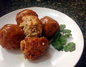 用勺子,把酱汁,淋在丸子上!即可!!