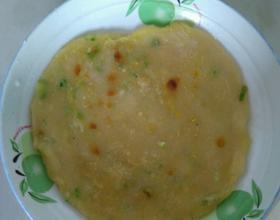 把面擀成饼,在面上摸一成油,撒上葱花。