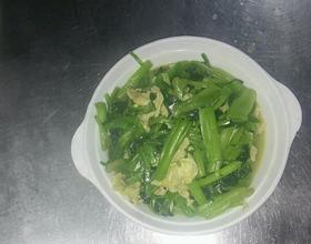 锅中加入底油烧热,下入菠菜,翻炒几下加入少许清水,